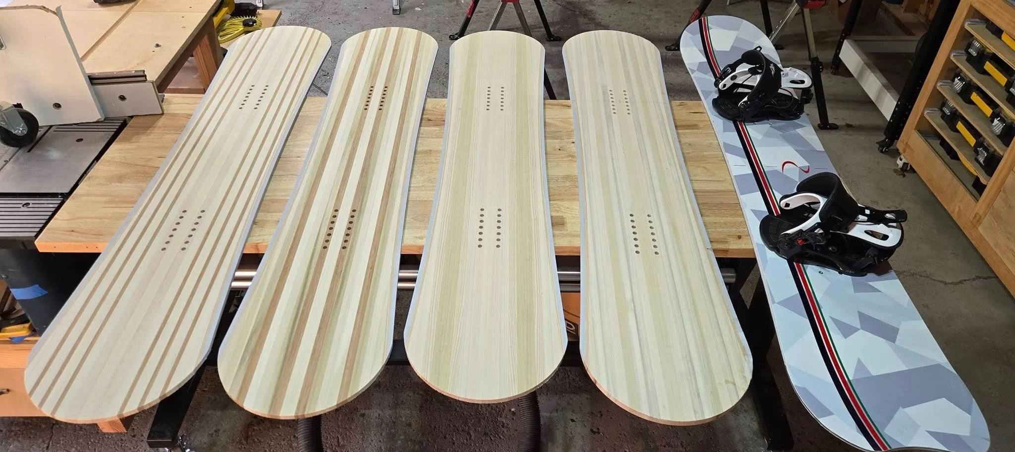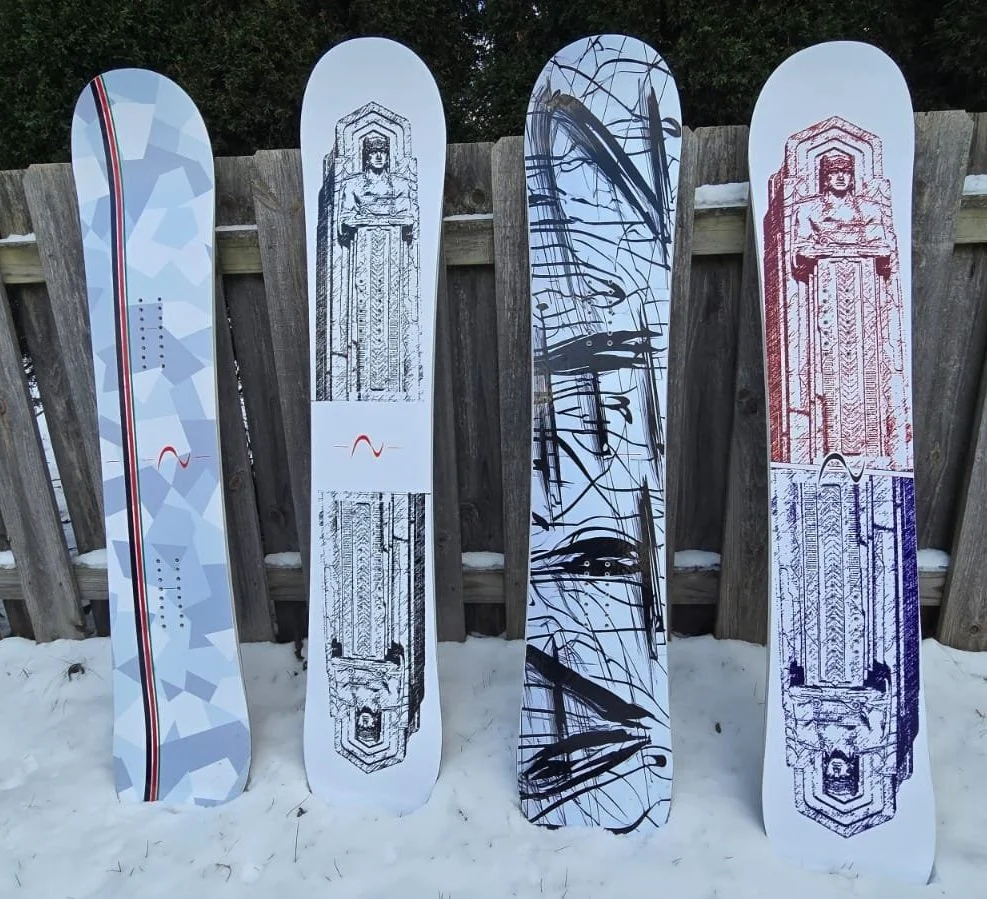 Our first build with the Midwest hills in mind. A cambered true twin, with tip and tail rocker, and full stringers on the sidecut for better edge holding. We use our first production run to test different core and flex combinations.